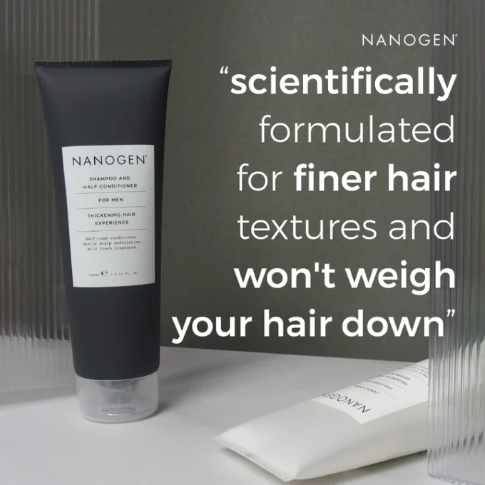 De Shampoo & Half-Conditioner for Men is een all-in-one shampoo speciaal voor mannen met een dunne of fijnere haartextuur. De veelzijdige shampoo schuimt op en creëert een exfoliërend schuim, dat je haar en hoofdhuid diep reinigt terwijl het haar wordt verzorgd door de conditioner. De geïntegreerde conditioner is ontworpen om te voorkomen dat het haar zwaar aanvoelt en volume mist. Het haar voelt dikker en sterker aan, wasbeurt na wasbeurt.
