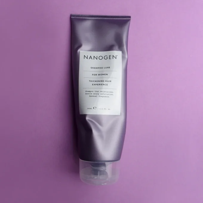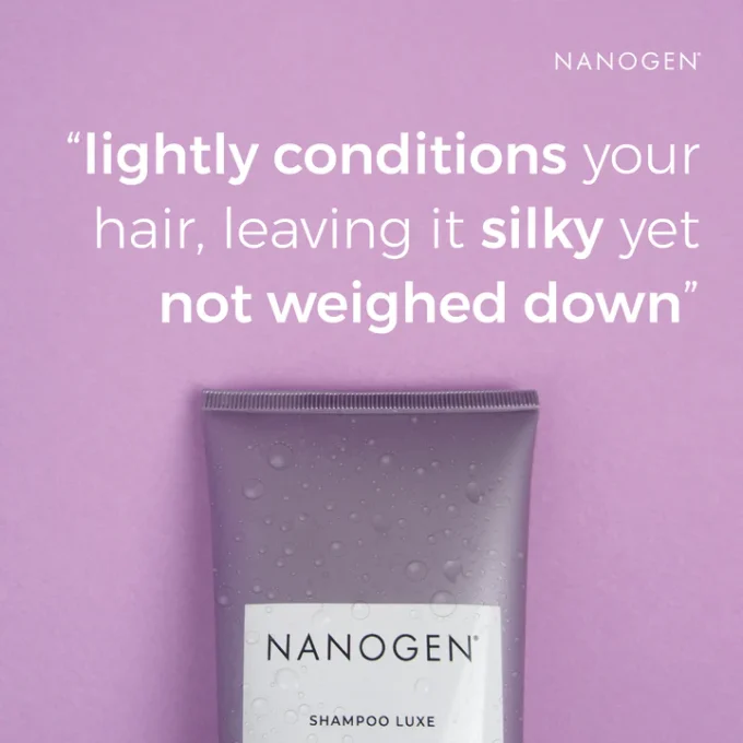 De Nanogen Shampoo Luxe for Women is een volume gevende shampoo. Het geeft je haar een zachte reiniging en creëert een verdikkend effect al vanaf de eerste wasbeurt. De shampoo verzorgt je haar zodat deze zijdezacht aanvoelt, zonder het haar te verzwaren. Hierdoor is het perfect voor vrouwen met een dunne of fijnere haartextuur. Deze krachtige en hydraterende formule is speciaal ontworpen om je haar en hoofdhuid in optimale conditie te houden voor dik en gezond haar. Shampoo Luxe for Women bevat onder andere keratine om je haar te versterken, antioxiderende kracht van groene thee-extract en bèta-glucaan die de hoofdhuid weer in balans brengt.